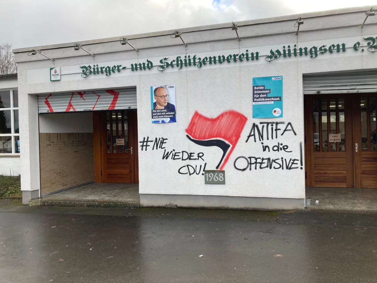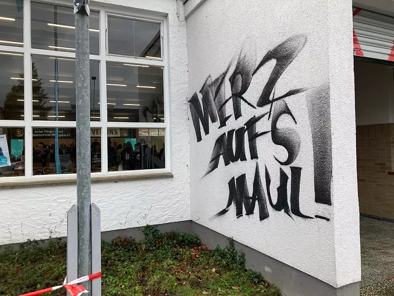 Vor einem Auftritt von Unionskanzlerkandidat und CDU-Chef Friedrich Merz ist die Schützenhalle im sauerländischen Menden mit Parolen beschmiert worden. Der Staatsschutz habe die Ermittlungen übernommen, sagte ein Polizeisprecher. Das Gebäude war vor dem geplanten Neujahrsempfang der Mendener CDU am Sonntag mit Parolen wie «Merz aufs Maul!», «Nie wieder CDU!» oder «Antifa in die Offensive!» beschmiert worden. Wie ein dpa-Reporter berichtete, waren die Schmähungen auf Wände rund um die Schützenhalle gesprüht worden. Zuvor hatte die «Westfalenpost» berichtet.