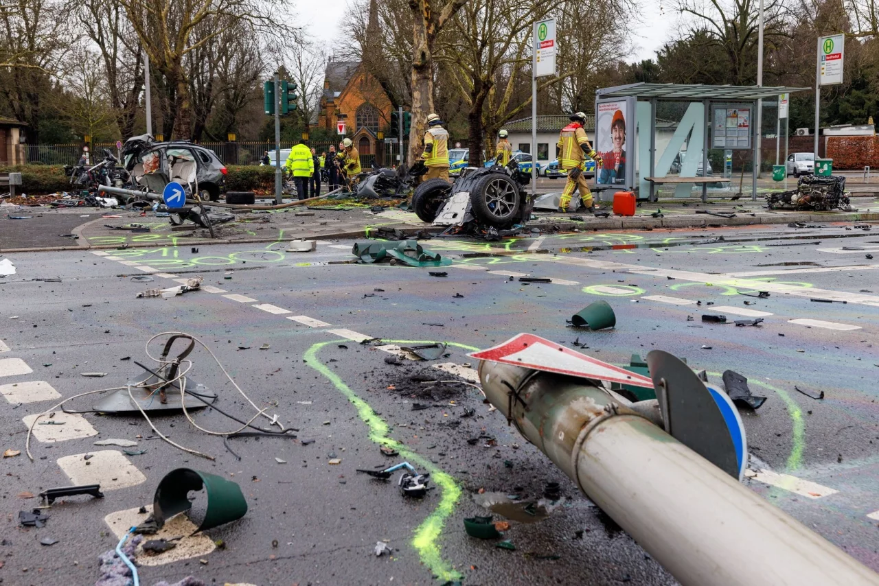 Nach dem schweren Autounfall am Samstag in Düsseldorf ist eine dritte Person verstorben. Die 53-jährige Beifahrerin hatte seit Samstag in Lebensgefahr geschwebt und erlag nun ihren Verletzungen, wie die Polizei mitteilte. Ein 54 Jahre alter Mann, der an einer Bushaltestelle gewartet hatte und von umherfliegenden Trümmerteilen getroffen worden war, schwebe nach wie vor in Lebensgefahr.