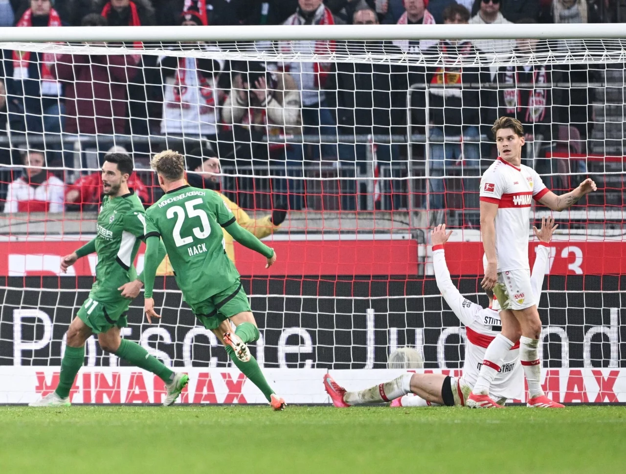 Die Schlüsselszene aber gab es in Minute 82: Nationalstürmer Kleindienst musste nach Vorarbeit von Luca Netz nur noch den Fuß hinhalten. Zuvor war er bei einer Großchance am starken DFB-Kollegen Alexander Nübel gescheitert (75.). Auch VfB-Joker Chris Führich besaß die Chance zum Siegtor, schob den Ball aber frei vor Moritz Nicolas in die Arme des Gladbacher Torwarts (72.). In der Tabelle rückten die Gladbacher bis auf zwei Zähler an Stuttgart heran.