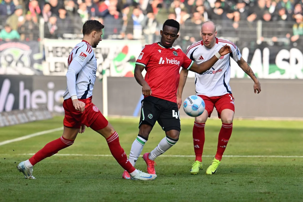 Im engen Aufstiegsrennen der 2. Fußball-Bundesliga haben Hannover 96 und Fortuna Düsseldorf Punkte liegen gelassen. Das Duell der direkten Konkurrenten endete in Niedersachsens Landeshauptstadt 1:1 (1:1). Der Abstand der Fortuna auf den Aufstiegs-Relegationsrang beträgt nun vier Punkte. Hannover steht einen Zähler hinter den Düsseldorfern.