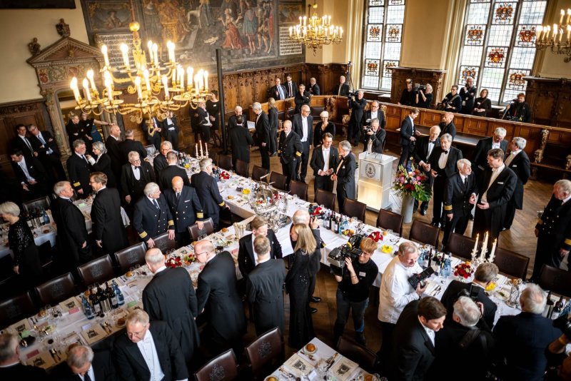 Zahlreiche Herren in Frack oder Kapitänsuniform, dazwischen wenige Frauen in edler Garderobe - im Bremer Rathaus haben sich rund 300 Menschen zur traditionsreichen Schaffermahlzeit getroffen. Darunter war als Ehrengast Nordrhein-Westfalens Ministerpräsident Hendrik Wüst (CDU), der auch eine Rede hielt.