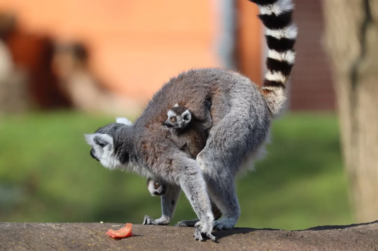 Mit großen Kulleraugen blicken vier kleine Kattas im Tierpark Hamm in die Welt. Zwei Zwillingspärchen der Lemurenart mit ihren charakteristischen quer gestreiften Schwänzen sind dort geboren worden. Die vier Jungtiere kuschelten sich derzeit noch überwiegend an die Bäuche ihrer Mütter, teilte der westfälische Tierpark mit. Die Äffchen unternähmen aber auch schon Kletterversuche auf den Rücken. In den nächsten Monaten würden sie dann die ersten eigenen Schritte machen. Die ganze Familie – einschließlich Vater Mattis – kümmere sich um den Nachwuchs. Kattas sind auf Madagaskar beheimatet.