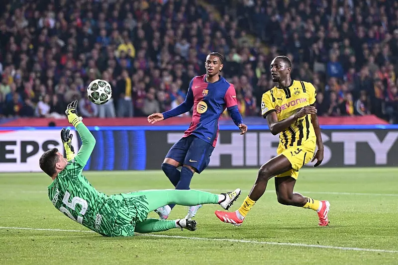 Dortmunds bislang bester Champions-League-Torschütze Serhou Guirassy tauchte in der 36. Minute plötzlich alleine vor Marc-André ter Stegens Vertreter Wojciech Szczesny im Barça-Tor auf, trat aber am Ball vorbei. In der Nachspielzeit der ersten Hälfte traf Guirassy dann nur das Außennetz.
