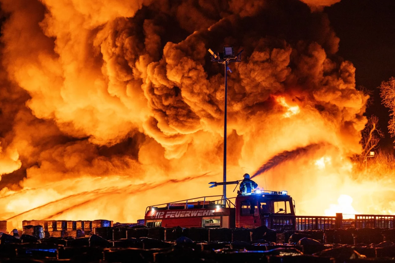 Noch habe die Feuerwehr den Bereich aber nicht freigeben, sodass die Brandermittler ihre Arbeit bislang nicht aufnehmen konnten, sagte eine Polizeisprecherin. Auch zur Höhe des Schadens sei noch keine Auskunft möglich. Insgesamt war auf einer Fläche von rund 7.000 Quadratmetern ein Feuer ausgebrochen. Drei Hallen einer Firma, die Kunststoff verarbeitet, standen in Flammen. Auch auf eine benachbarte Firma hatte das Feuer übergegriffen.