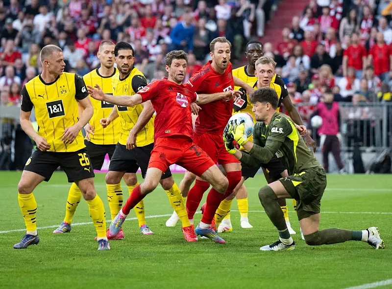 Der von Thomas Müller als Kapitän angeführte FC Bayern hat im Bundesliga-Klassiker gegen Borussia Dortmund den entscheidenden Schritt zum 34. Meistertitel verpasst. Drei Stunden nach der 0:0-Vorlage von Verfolger Bayer Leverkusen mussten sich auch die Münchner beim 2:2 (0:0) mit einem Unentschieden begnügen.