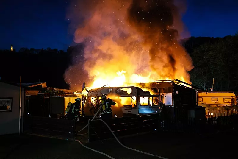 Wie die Feuerwehr mitteilte, brannte auf einem Campingplatz am Harkortsee in Hagen ein Wohnwagen. Die Flammen griffen demnach zudem auf zwei weitere Campingwagen über. Rund 40 Einsatzkräfte seien zur Löschung des Feuers vor Ort gewesen, sagte ein Sprecher der Feuerwehr. Um den Brand löschen zu können, wurde laut Feuerwehr auch Wasser aus dem See entnommen. Eine Person sei leicht verletzt worden. Die Brandursache war zunächst unklar.
