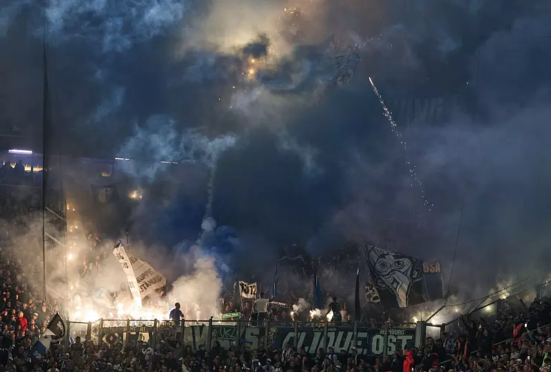 Vor 62.077 Zuschauern in der ausverkauften Schalker Arena nutzten sie ihre numerische Überlegenheit letztlich nicht zum Sieg. Nach einer Stunde musste das Spiel für rund fünf Minuten unterbrochen werden, weil die Hamburger Fans massiv Pyrotechnik und Raketen zündeten, die auch auf Zuschauerränge und das Spielfeld flogen. In der Folge wurden die Schalke wieder mutiger und kamen in der 81. Minute durch Sylla zum umjubelten Ausgleich.
