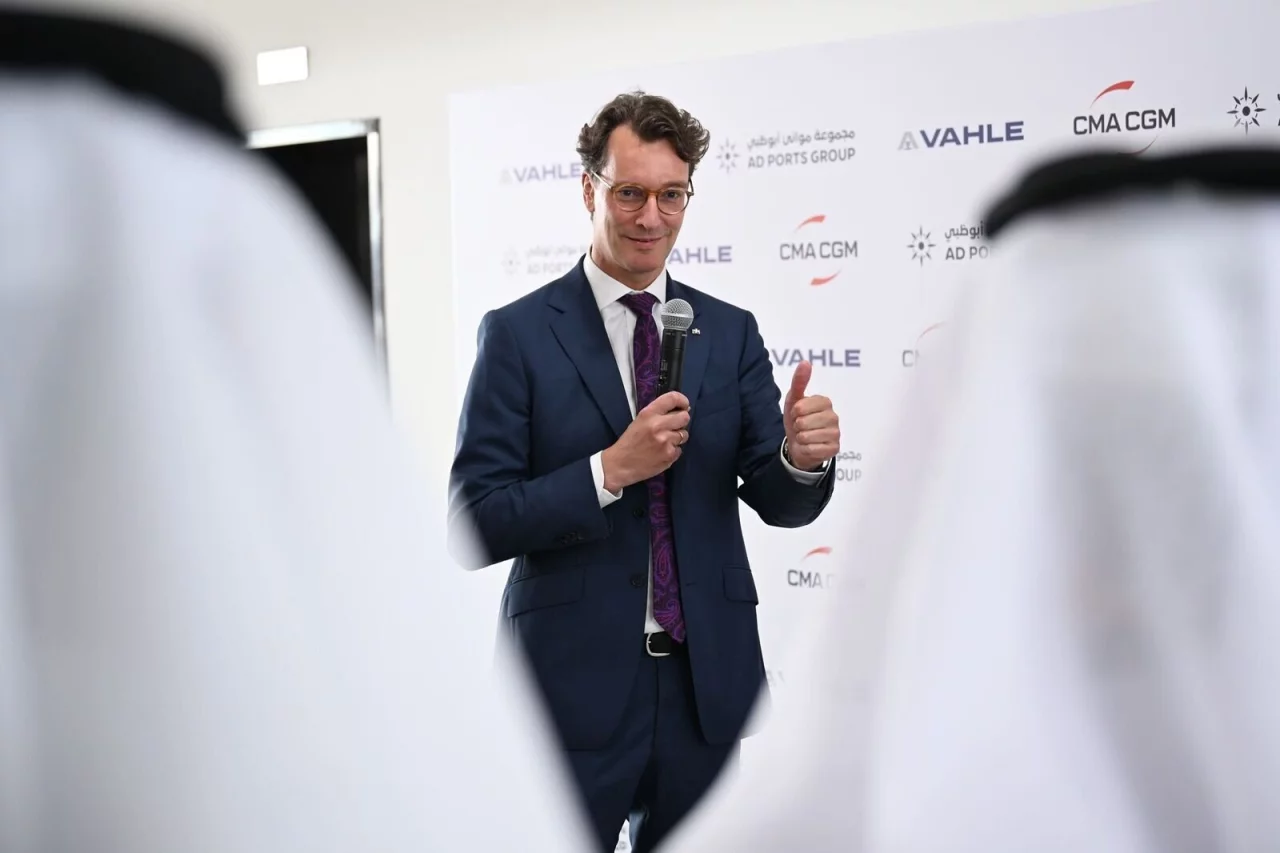 Außerdem besuchte Ministerpräsident Wüst eine Lagerhalle des Bonner Logistikers DHL in Dubai, in der sich Ersatzteile für Autos – darunter Batterien für E-Autos – befinden. Das Logistikgeschäft für die Elektromobilität habe im arabischen Raum ein riesengroßes Potenzial, sagte der mitgereiste DHL-Vorstand Thomas Ogilvie. Später sprach Wüst am Khalifa-Hafen im Emirat Abu Dhabi mit arabischen Hafenmanagern und dem Chef des Automatisierungsspezialisten Vahle aus Kamen (NRW), dessen Steuerungstechnik in dem Hafen zum Einsatz kommen und die Verladung von Containern vereinfacht.