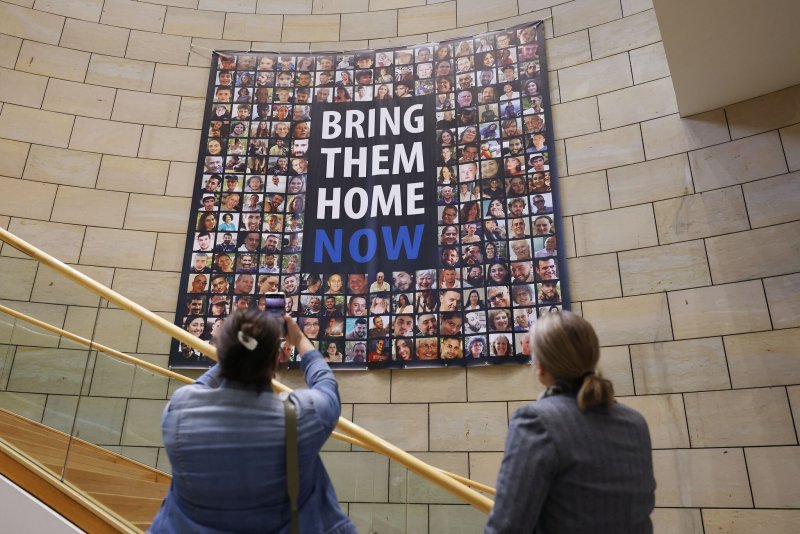 Im Landtag Nordrhein-Westfalen hängt seit November 2023 ein Banner mit Fotos der Hamas-Geiseln und der Aufschrift «Bring them home now» in den Farben der israelischen Flagge. Es ist in Zusammenarbeit mit der jüdischen Gemeinde Düsseldorf entstanden.