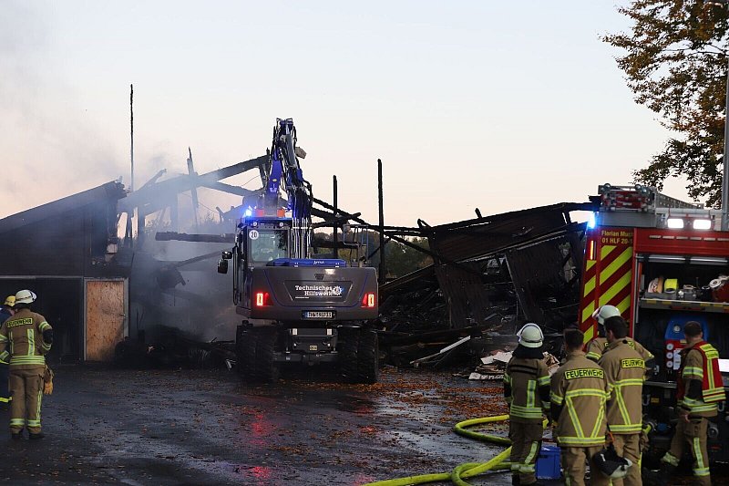 Die Feuerwehr brachte den Brand den Angaben zufolge zwar unter Kontrolle, konnte jedoch nicht verhindern, dass die Halle vollständig niederbrannte. Insgesamt waren rund 65 Kräfte von Feuerwehr und THW bis 9.00 Uhr im Einsatz. Brandursache und Sachschaden waren zunächst unklar. Zuerst hatte der WDR berichtet.