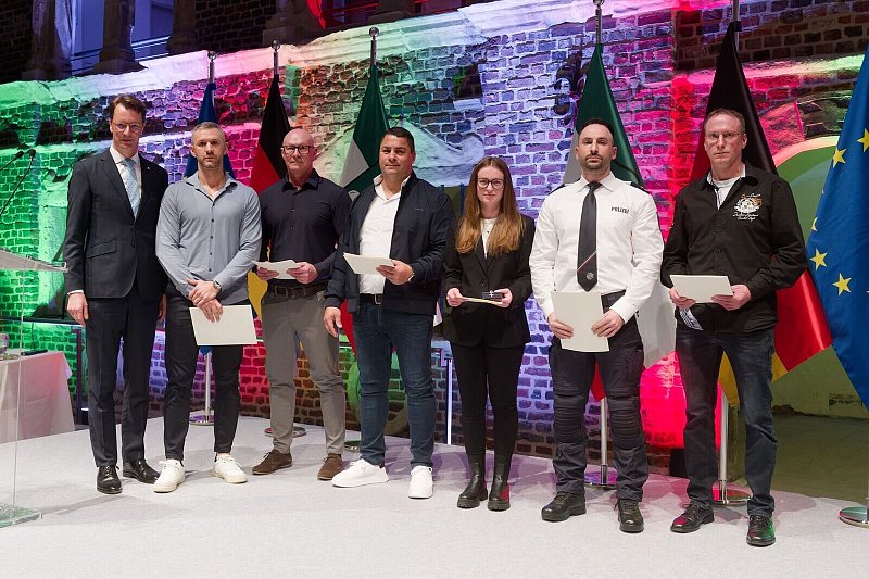 Zweieinhalb Jahre nach dem Mordanschlag auf Einsatzkräfte in einem Ratinger Hochhaus hat NRW-Ministerpräsident Hendrik Wüst (CDU) neun Betroffene mit der Rettungsmedaille des Landes geehrt. Sie erhielten die Auszeichnung für ihr «mutiges, heldenhaftes Handeln und für ihre gegenseitige Unterstützung in einer hochdramatischen Lage», erklärte Wüst. Zwei der neun Geehrten waren nicht anwesend.