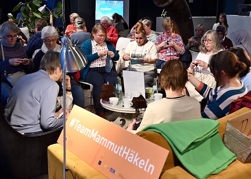 Bis Mitte Dezember kommen nun immer freitags viele Leute zusammen, um sich mit bereit liegender Wolle ans Werk zu machen und zehn mal zehn Zentimeter kleine Quadrate zu häkeln. Roter Faden dabei auch: Bei Kaffee und Gebäck können die Teilnehmenden sich kennenlernen, austauschen, plaudern. Dieser soziale, kommunikative Aspekts des Projekts sei auch ein Grund gewesen, warum man das Ganze ins Museum geholt habe, sagt Sprecher Philipp Bänfer. Das Mammut werde 2026 Teil einer Sonderausstellung.