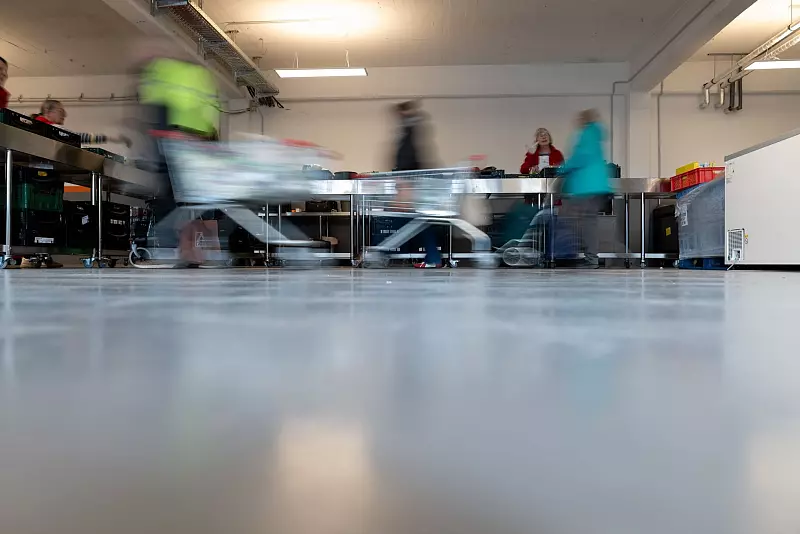 Die Essener Tafel betreibt zehn Ausgabestellen und setzt auf durchdachte Organisation: Ein Warteraum mit Nummernanzeige und gestaffelten Abholzeiten verhindert lange Warteschlangen. Mit Kühlhäusern, einer eigenen Papierpresse zur Müllvermeidung, einem Tiefkühlhaus und einer «Waschstraße» für Lebensmittelkisten ist die Tafel ausgestattet. Doch auch hier gilt: Der Bedarf wächst schneller als die Ressourcen. «Das Spendenaufkommen ist derzeit relativ mager», sagt Sartor. 130 Ehrenamtliche und vier Festangestellte halten den Betrieb aufrecht – fast alle sind im Rentenalter, rund ein Zehntel bezieht selbst Sozialleistungen.