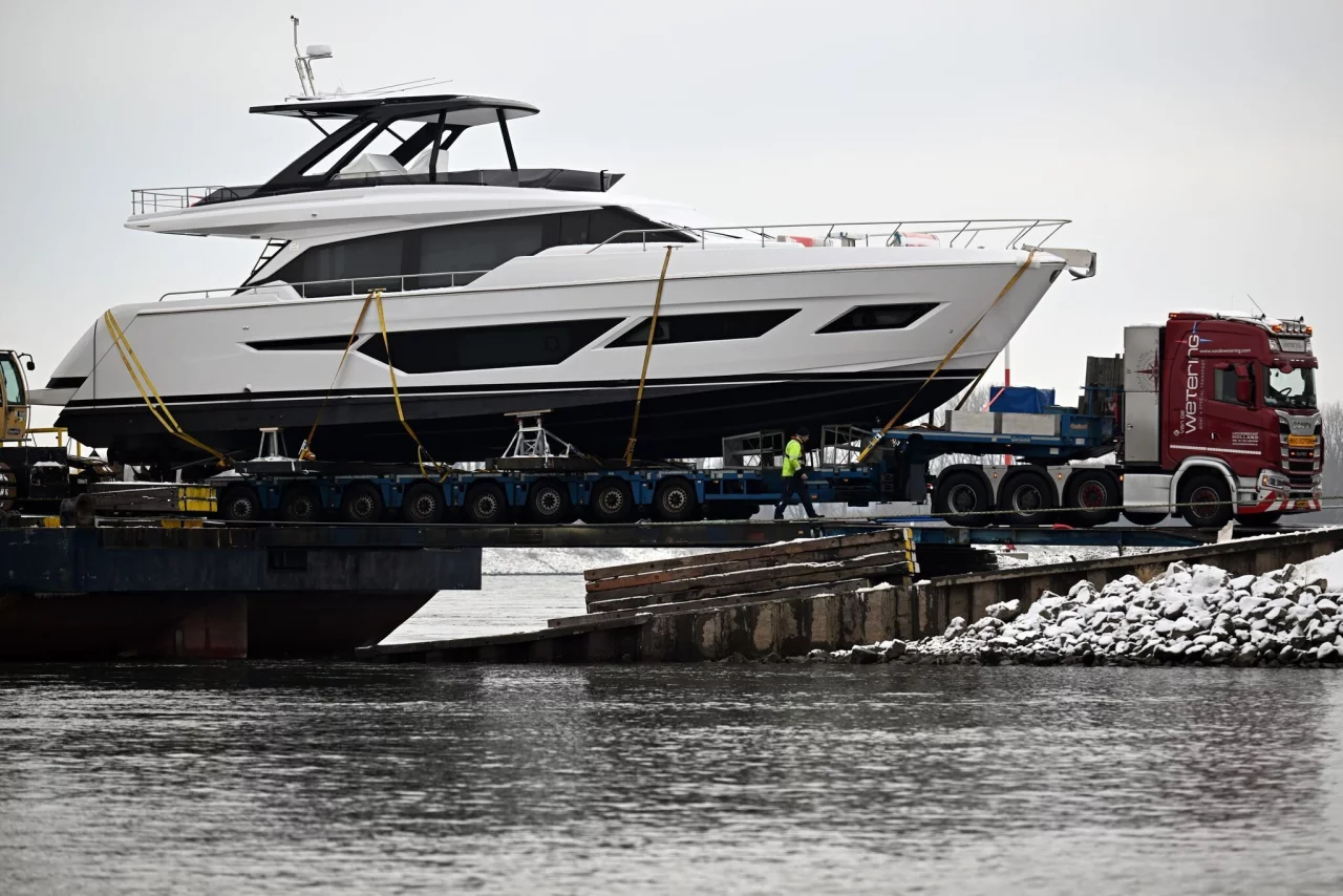 Die Luxusjachten wurden in langwieriger Präzisionsarbeit über eine Brücke auf einen Tieflader gezogen und an Land gebracht. Bei der «Boot» präsentieren sich Messeangaben zufolge rund 1.500 Firmen und Organisationen aus 67 Ländern. Erwartet werden mehr als 200.000 Besucherinnen und Besucher.