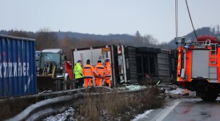 Mindestens zwei weitere Lastwagen stellten sich bei Bremsmanövern auf eisglatter Fahrbahn quer. Verletzt wurde den Angaben zufolge niemand. Die Autobahn war wegen der Räumungsarbeiten in Richtung Hannover mehrere Stunden voll gesperrt. Die Fahrbahn musste wegen der Glätte noch abgestreut werden. Gegen 10.00 Uhr konnte die Polizei den Verkehr über die linke Spur an der Unfallstelle vorbeileiten.