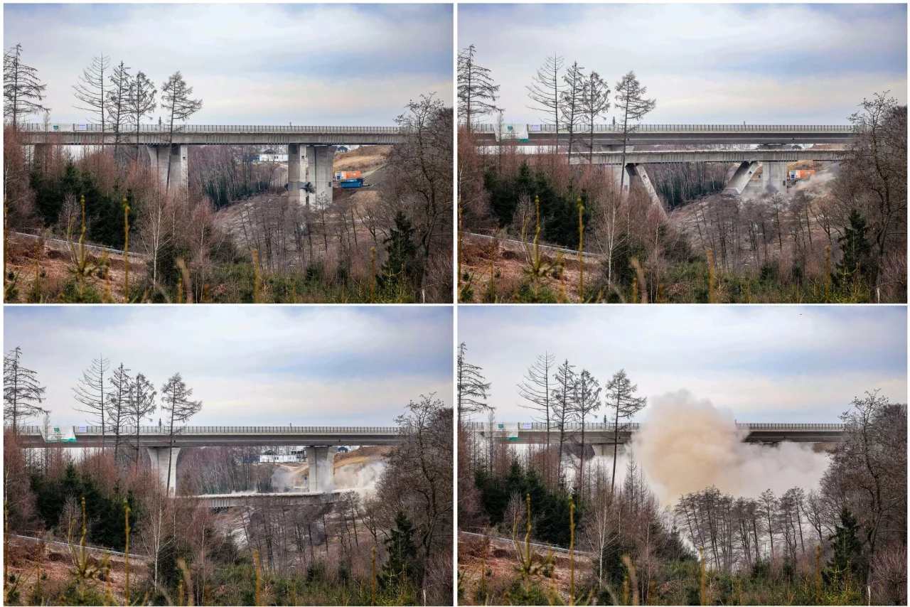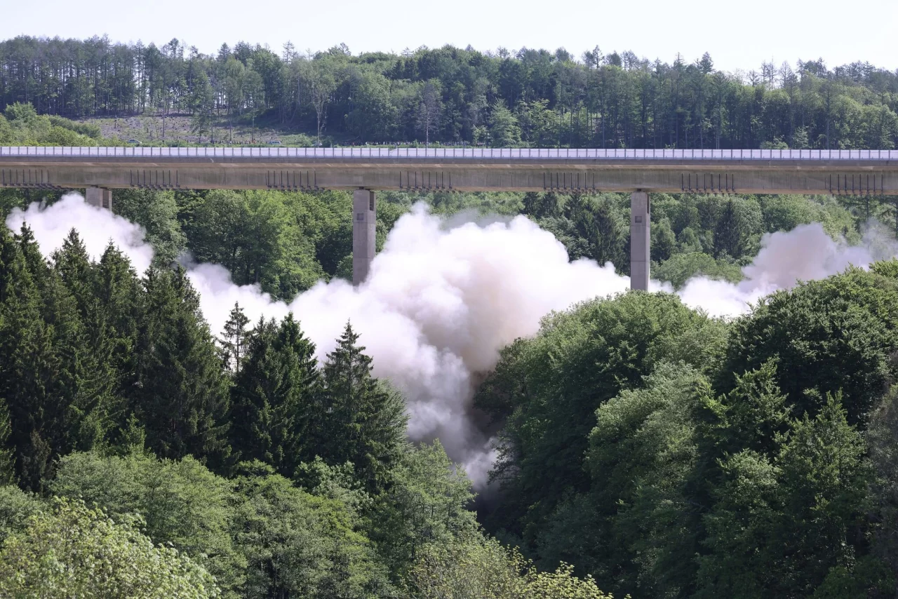 Im Mai 2023 war bereits die westliche Brückenhälfte gesprengt worden. Die Sprengmeister wollen den verbleibenden Brückenteil um 11.00 Uhr zu Fall bringen. Bevor der Verkehr wieder über die direkt angrenzende neue Brücke auf westlicher Seite rollen kann, muss er nach der Sprengung erst gründlich überprüft werden, hieß es von der Autobahn GmbH.