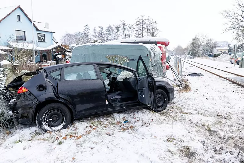 Als die Einsatzkräfte am Unfallort eintrafen, lag der Pkw mit stark zerstörter Fahrerseite und ausgelösten Airbags in einem Zaun, hieß es von der Feuerwehr. Der Fahrer hatte sich von der Unfallstelle entfernt, er wurde schließlich in der Nähe von der Polizei gefunden. Die Zugpassagiere wurden mit Taxis weiterbefördert.