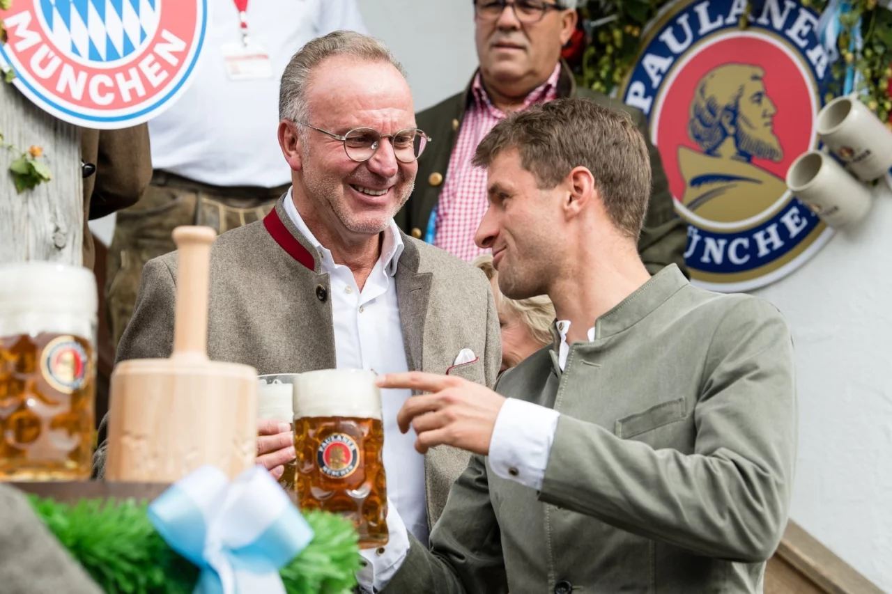 München - Thomas Müller hielt an der Seite von Vorstandschef Karl-Heinz Rummenigge den Maßkrug in die Höhe, mit der linken Hand zeigte er den Daumen nach oben. Das «Alles in Ordnung»-Zeichen auf dem Weg ins Käferzelt passte aber nicht zur Gemütslage des abgewatschten Bayern-Stars.