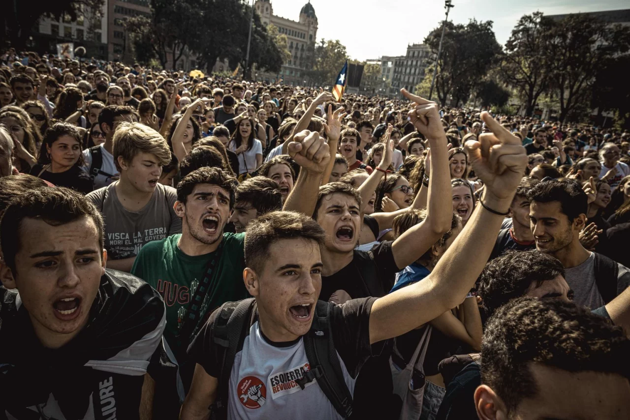 In Kataloniens Hauptstadt Barcelona und anderen Teilen Kataloniens gab es massive Proteste. Tausende Unabhängigkeitsbefürworter versammelten sich unter anderem auf der Plaça Sant Jaume vor dem Sitz der Regionalregierung, schwenkten die katalanische Flagge und forderten «Freiheit für die politischen Gefangenen». Nach einem Aufruf der Plattform «Demokratischer Tsunami» versuchten Demonstranten, den Flughafen von Barcelona lahmzulegen und die Zugangswege zu blockieren. Es kam zu Zusammenstößen mit der Polizei, die auch Schaumgeschosse einsetzte. Medienangaben zufolge wurden bis zum Abend mehr als 30 Menschen verletzt. Zahlreiche Flüge mussten gestrichen werden oder waren verspätet.