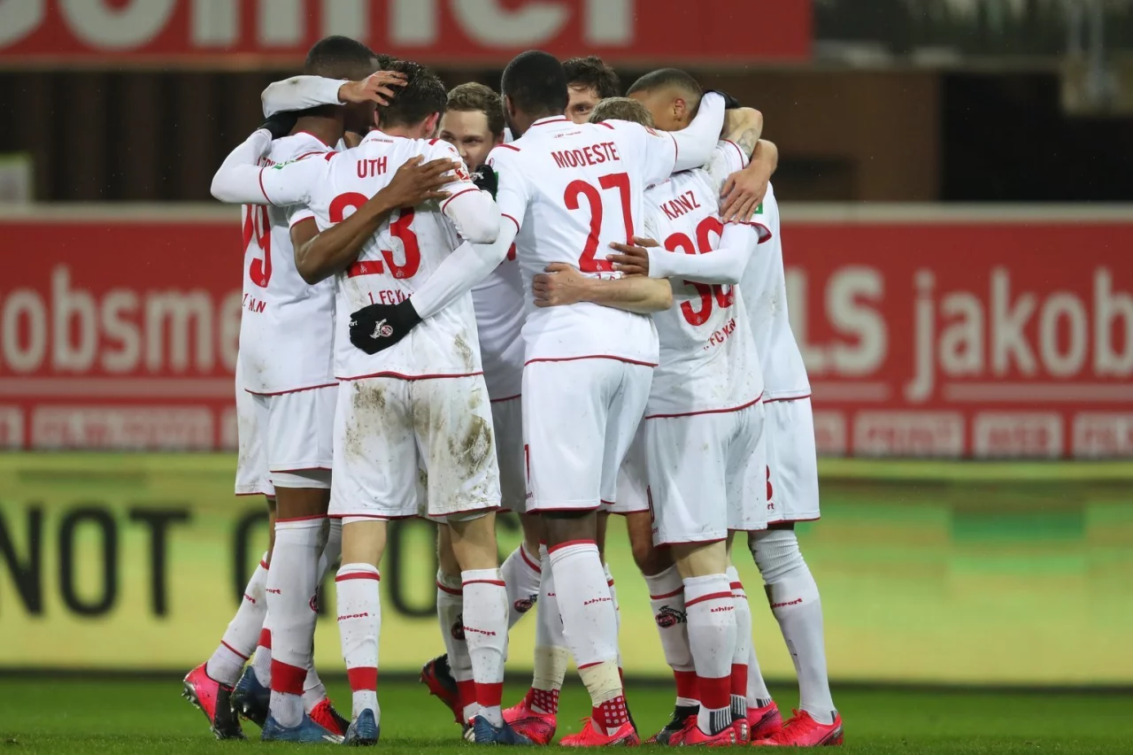 Jorge Meré in der 28. Minute und Jonas Hector mit einem Traumtor (36.) erzielten vor 15.000 Zuschauern die Treffer für den FC, der seine beste Rückrunde seit 31 Jahren spielt. Die Gastgeber müssen sich dagegen trotz des Treffers von Dennis Srbeny (73.) mehr denn je auf die direkte Rückkehr in Liga zwei einstellen. Der Rückstand auf den Relegationsplatz könnte am Wochenende auf acht Punkte anwachsen. «Mir fehlen so langsam die Worte», sagte Srbeny. «Ein Punkt wäre verdient gewesen, aber so stehen wir wieder mit leeren Händen da und das kotzt mich langsam an.»