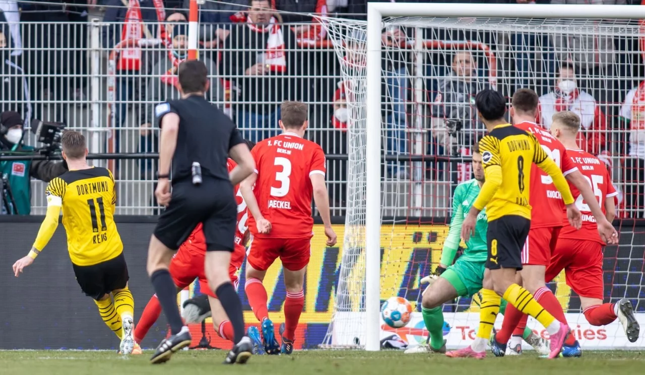 In den entscheidenden Momenten war der Tabellenzweite aus Dortmund, der erneut ohne Topstürmer Erling Haaland auskommen musste, hellwach und körperlich robust. Nach einem Abpraller im Strafraum der Berliner reagierte Dahoud blitzschnell und spielte den Ball in den Lauf von Kapitän Reus, der durch die Beine von Union-Keeper Andreas Luthe zum 1:0 vollendete (18. Minute).