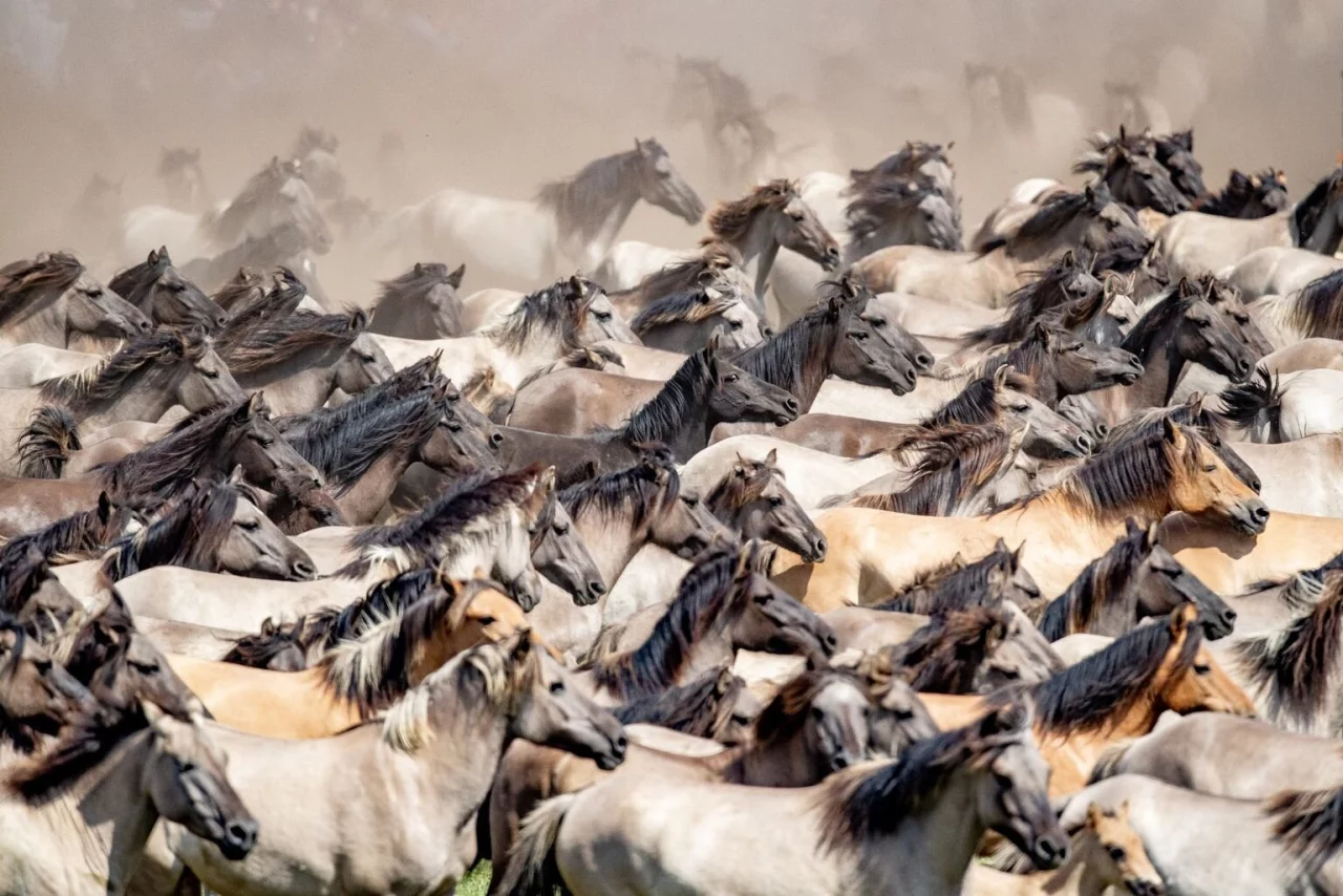 Dülmen - Nach zwei Jahren Corona-Pause hat das Münsterland sein Tierspektakel zurück: Vor 15.000 Zuschauern wurden bei Dülmen aus einer Herde von rund 400 Wildpferden die Jährlingshengste eingefangen und anschließend versteigert.