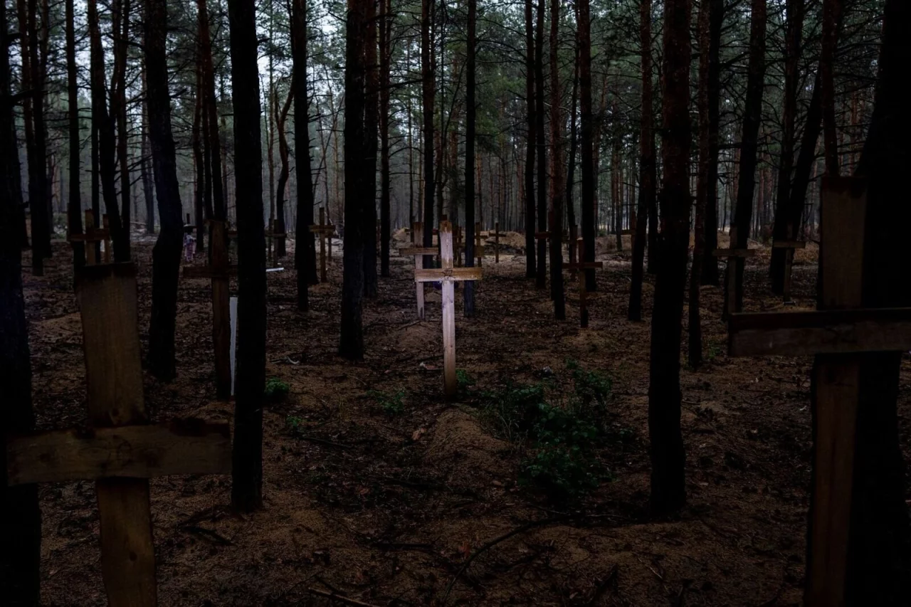 Ersten Erkenntnissen zufolge handelt es sich bei den mehr als 440 Grabstätten in Isjum nicht, wie zunächst angenommen, um ein Massengrab, sondern um viele Einzelgräber: «Ich möchte das nicht Butscha nennen - hier wurden die Menschen, sagen wir mal, zivilisierter beigesetzt», der ukrainische Vermisstenbeauftragte Oleh Kotenko dem TV-Sender Nastojaschtschee Wremja. Die Menschen seien den Untersuchungen zufolge ums Leben gekommen, als Russland die Stadt Ende März heftig beschossen habe. Die Bestatter hätten zum Teil nicht gewusst, wer die vielen Toten seien. Deshalb stünden auf einigen Kreuzen nur Nummern. Die Anzahl der Leichen und ihre Identität ist bislang unbekannt.
