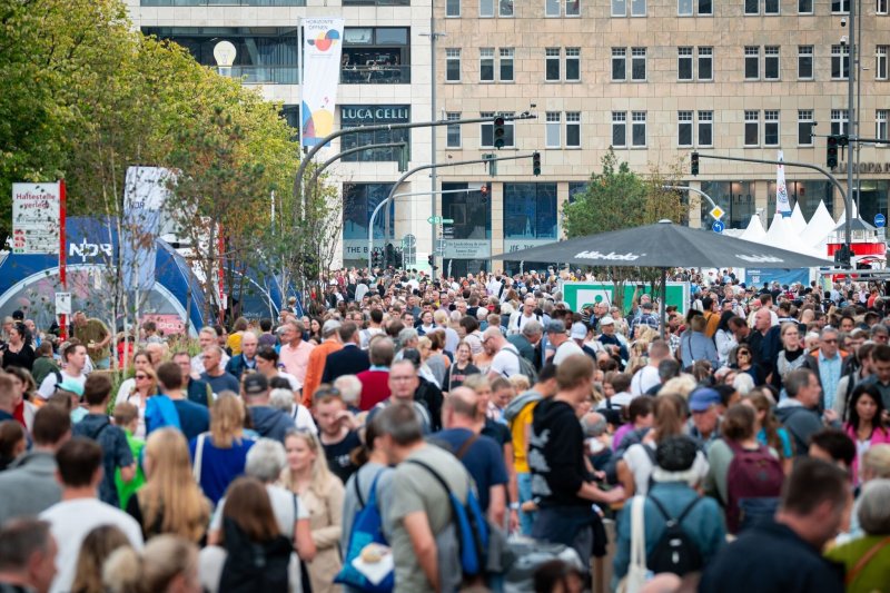 Heute trübte zwar das Wetter mit viel Wind und Regenschauern die Feierlaune etwas ein. Dennoch herrschte am und um den Rathausmarkt großer Andrang, wo sich die Verfassungsorgane Bundestag, Bundesrat, Bundesregierung und Bundesverfassungsgericht präsentierten. Ebenfalls beliebt waren in der nahe gelegenen Mönckebergstraße - eine bekannte Einkaufsstraße - die Zelte der Bundesländer sowie die Blaulichtmeile, eine Leistungsschau etwa von Polizei und Feuerwehr.