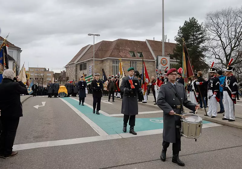 Vor der Kirche in der Offenburger Innenstadt versammelten sich Hunderte Menschen. Soldaten des Bundeswehr-Wachbataillons nahmen nach dem Gottesdienst in einer Ehrenformation Aufstellung. Das Heeresmusikkorps Koblenz spielte mehrere Musikstücke, darunter die deutsche Nationalhymne und den Trauermarsch aus dem Oratorium «Saul» von Georg Friedrich Händel.