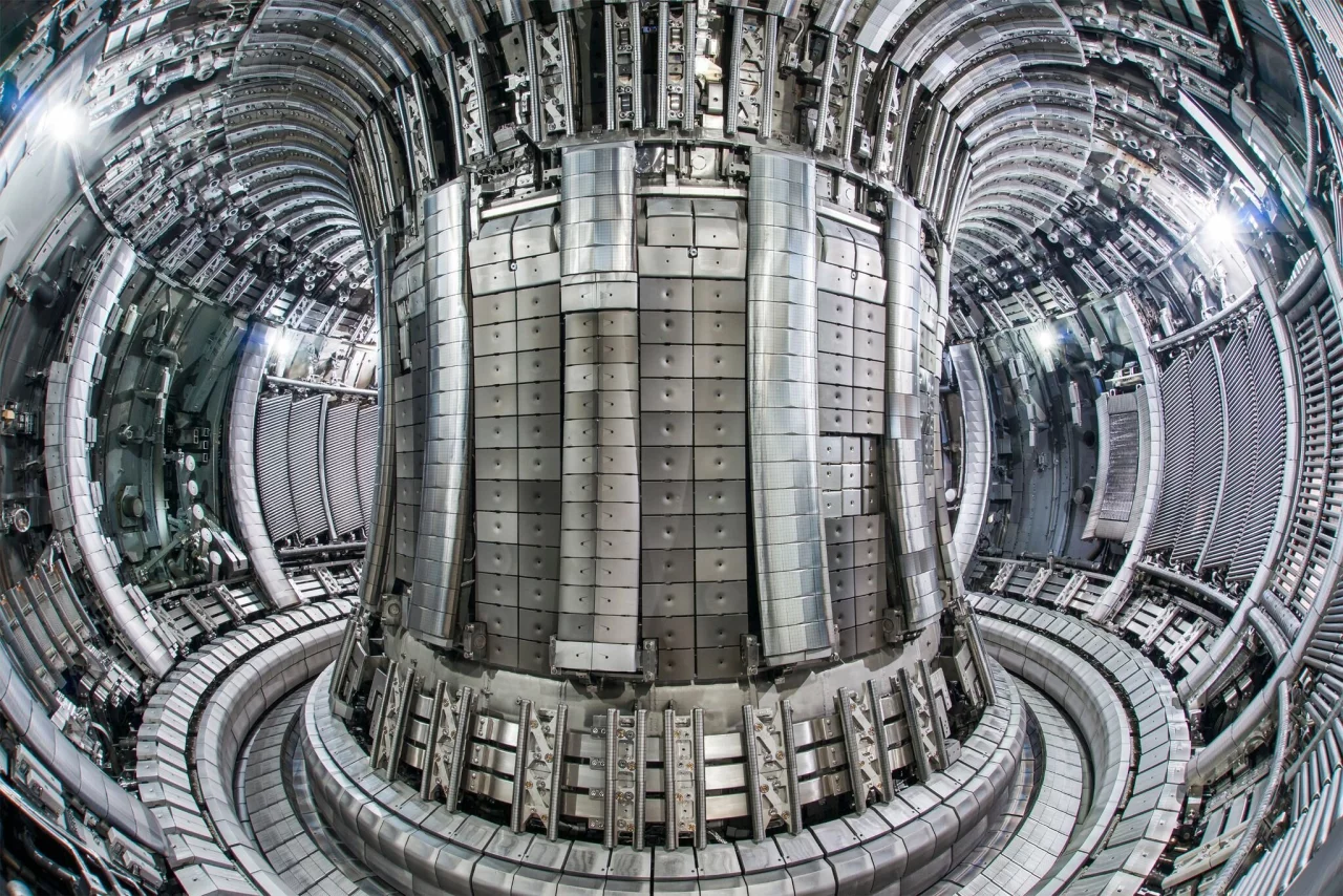 In der Praxis ist die Energiegewinnung komplex: Grundlage sind Wasserstoffatome mit unterschiedlichem Gewicht, sogenannte Wasserstoffisotope. Im «Jet» werden die Wasserstoffisotope Deuterium und Tritium zu einem extrem heißen Plasma erhitzt. Darin sind die Bestandteile der Atome, die positiv geladenen Kerne und die negativ geladenen Elektronen, voneinander getrennt. Aufgrund der Ladungen kann das Plasma durch ein sehr starkes Magnetfeld in einem ringförmigen Reaktor in der Schwebe gehalten werden. Das ist wichtig, damit es nicht in Kontakt mit den Gefäßwänden kommt und abkühlt. Im Zentrum des Plasmas können rund 150 Millionen Grad herrschen.