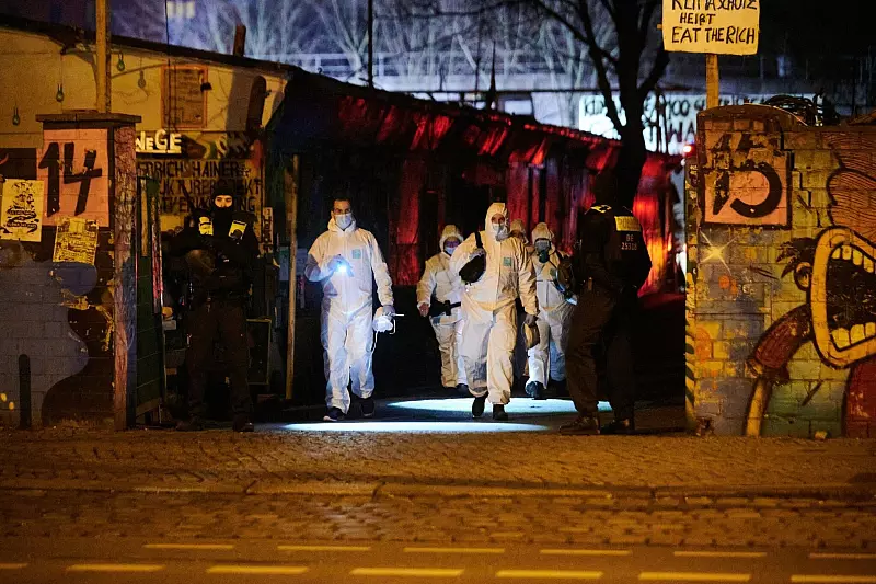 In einer am Morgen durchsuchten Wohnung in der Berliner Corinthstraße trafen die Fahnder nach Angaben des federführenden Landeskriminalamts Niedersachsen zwar einen Menschen an, von den Gesuchten sei aber niemand dort gewesen. Am Nachmittag folgte ein weiterer Einsatz auf der Autobahn 5 südlich von Darmstadt, unter anderem waren Spezialeinsatzkräfte beteiligt, wie eine LKA-Sprecherin mitteilte. Demnach gab es zwar keine Verhaftungen oder Festnahmen, aber ein Camper wurde abgeschleppt. Details zu dem Fahrzeug nannte die Sprecherin nicht. Bereits am Sonntag waren in Friedrichshain zunächst das Bauwagen-Gelände und am Abend eine Wohnung durchsucht worden. Auch dabei hatte es keine Festnahme gegeben.