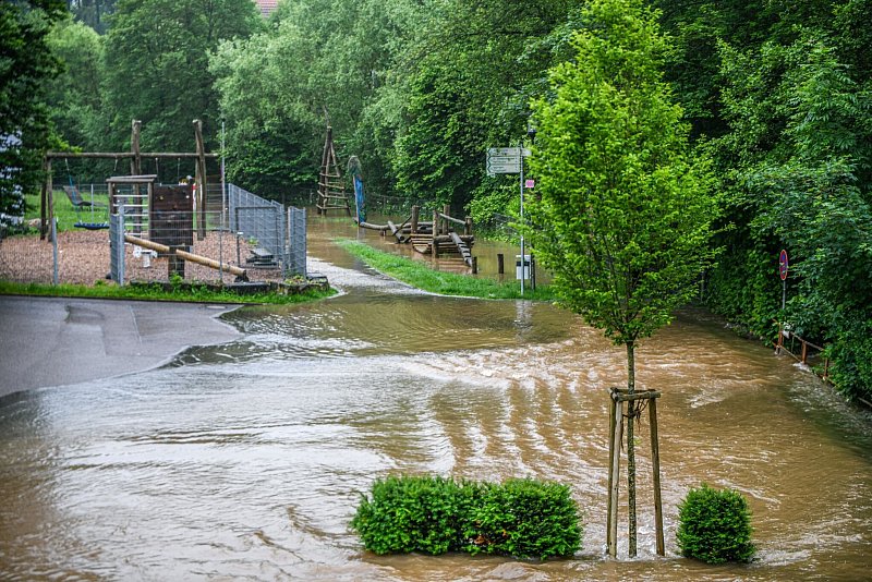 Feuerwehrleute retteten in Ebersbach an der Fils mehr als elf von Fluten eingeschlossene Menschen. Mehrere hätten sich zudem selbst oder mithilfe von Nachbarn in Sicherheit bringen können, sagte ein Sprecher des Landkreises Göppingen. Einige Straßen seien bis zu drei Meter überflutet und zahlreiche Gebäude evakuiert worden. Nennenswert verletzt worden sei nach aktuellem Stand aber niemand.