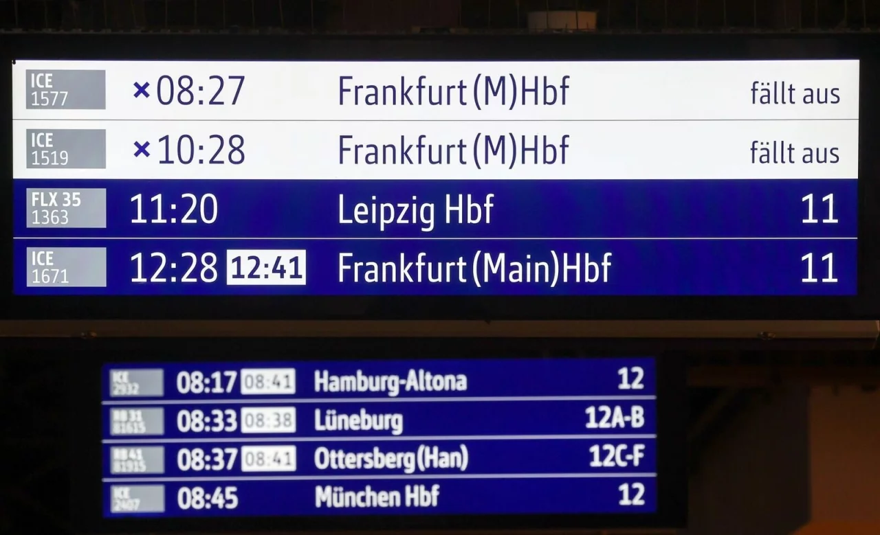 Immer mehr Züge im Regional- und Fernverkehr der Deutschen Bahn fallen aus. Von 2019 bis 2024 stieg der Anteil der gestrichenen Fahrten im Fernverkehr von 1 auf 4 Prozent, wie aus der Antwort des Verkehrsministeriums (BMDV) auf eine Anfrage des Grünen-Abgeordneten Matthias Gastel hervorgeht - Streiks und andere externe Einflussfaktoren eingerechnet. Im Regionalverkehr lag der Anteil im vergangenen Jahr demnach bei fünf Prozent.