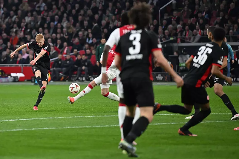 Vor 53.400 Zuschauern brachte Brian Brobbey den Spitzenreiter der Eredivisie in der 10. Minute in Führung, doch Hugo Larsson (27.) und Ellyes Skhiri (70.) drehten die Partie für die Frankfurter. Im Rückspiel am kommenden Donnerstag vor heimischer Kulisse hat das Team von Trainer Dino Toppmöller nun alle Trümpfe für das Weiterkommen in der Hand.