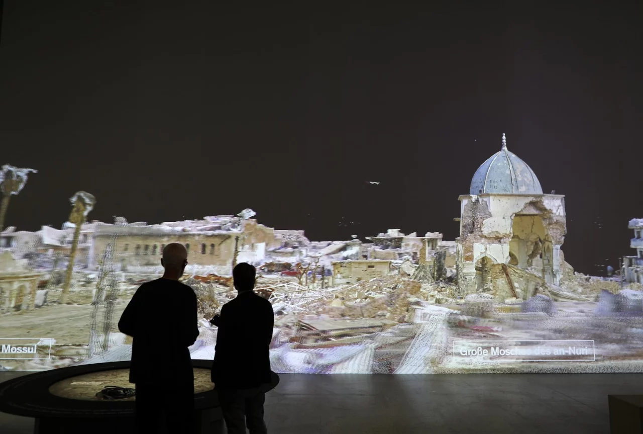 Bonn - Es ist ein zugleich überwältigender und erschütternder Eindruck: Der Besucher steht vor einer riesigen Leinwand und hat das Gefühl zu schweben. Er fliegt über das zerstörte Mossul, die zweitgrößte Stadt des Irak, die von 2014 bis 2017 in der Hand der Terrormiliz IS war.