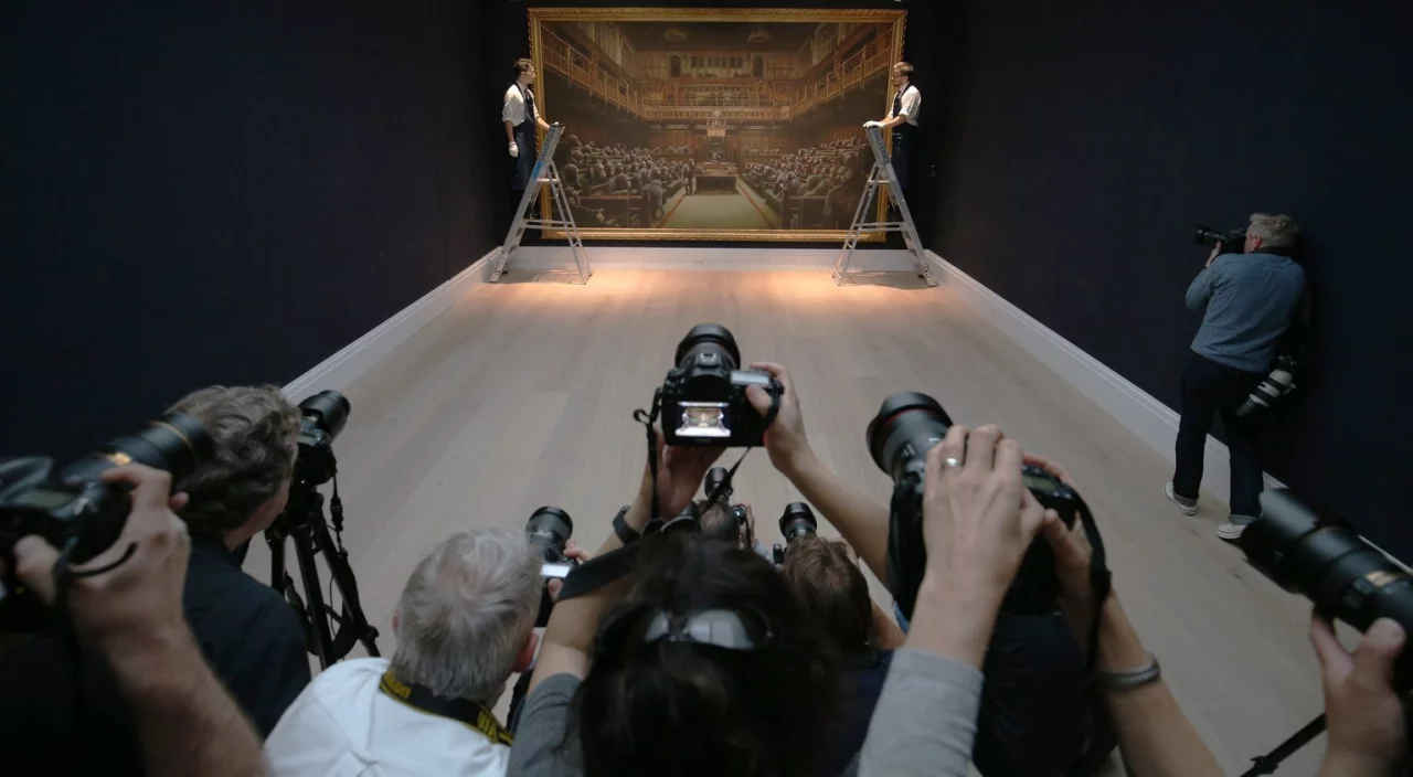 Am Donnerstagabend war das größte bekannte Banksy-Gemälde, das das britische Unterhaus voll besetzt mit Schimpansen zeigt, beim Londoner Auktionshaus Sotheby's versteigert worden. Weder zum Verkäufer noch zum Käufer gab es Angaben.