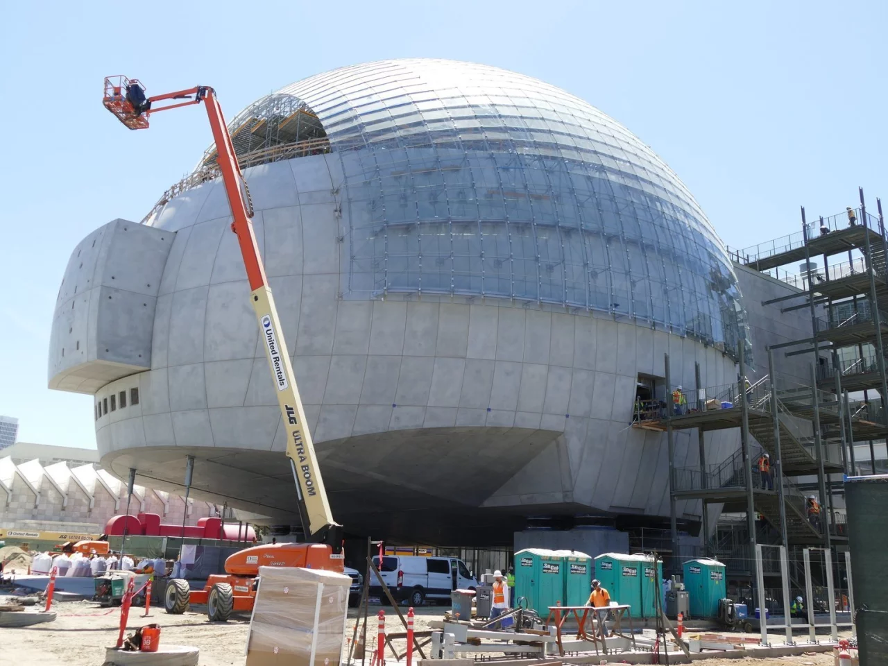 Die Filmakademie, die alljährlich die Oscars verleiht, scheut für ihr Mega-Projekt keine Kosten. Neben dem eleganten Altbau am Wilshire Boulevard in Los Angeles - über Glasbrücken verbunden - ragt eine kolossale, futuristische Kugel aus Glas, Stahl und Beton in den Himmel. Getragen von bebensicheren Stelzen, entworfen von dem italienischen Stararchitekten Renzo Piano, der durch Bauten wie das Centre Pompidou und den dreieckigen Londoner Wolkenkratzer «The Shard» berühmt ist.