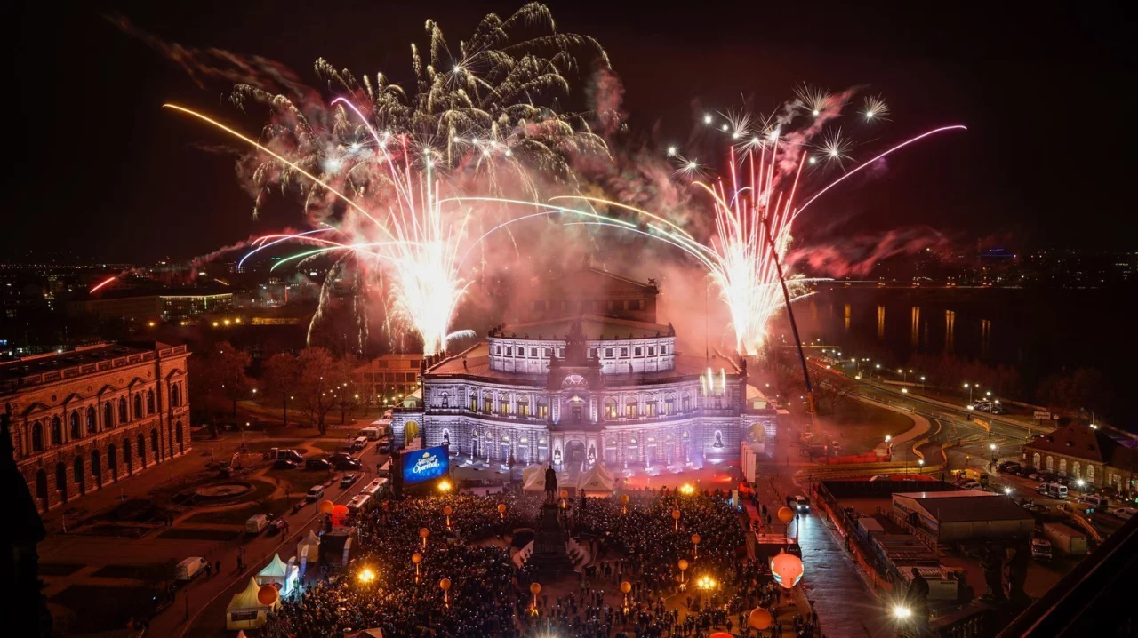 «Man hätte vorher vielleicht genauer überlegen müssen», sagt ein Mann aus Meißen auf dem Theaterplatz, den Hunderte wieder zur Tanzfläche machten. «Wir kommen fast jedes Jahr, weil wir gern tanzen», erklärte seine Frau. Die Mittfünfziger fürchten um den Ball und das Open-Air-Fest, das ihn einzigartig macht. Von Ferne mischen sich Bässe in die Show mit fliegenden Kutschen und «Märchenonkel». Zum 1. Dresdner SeifenOpernBall um die Ecke kamen rund 150 Menschen - einer fröhlichen Satire auf die Vorgänge um das Original.