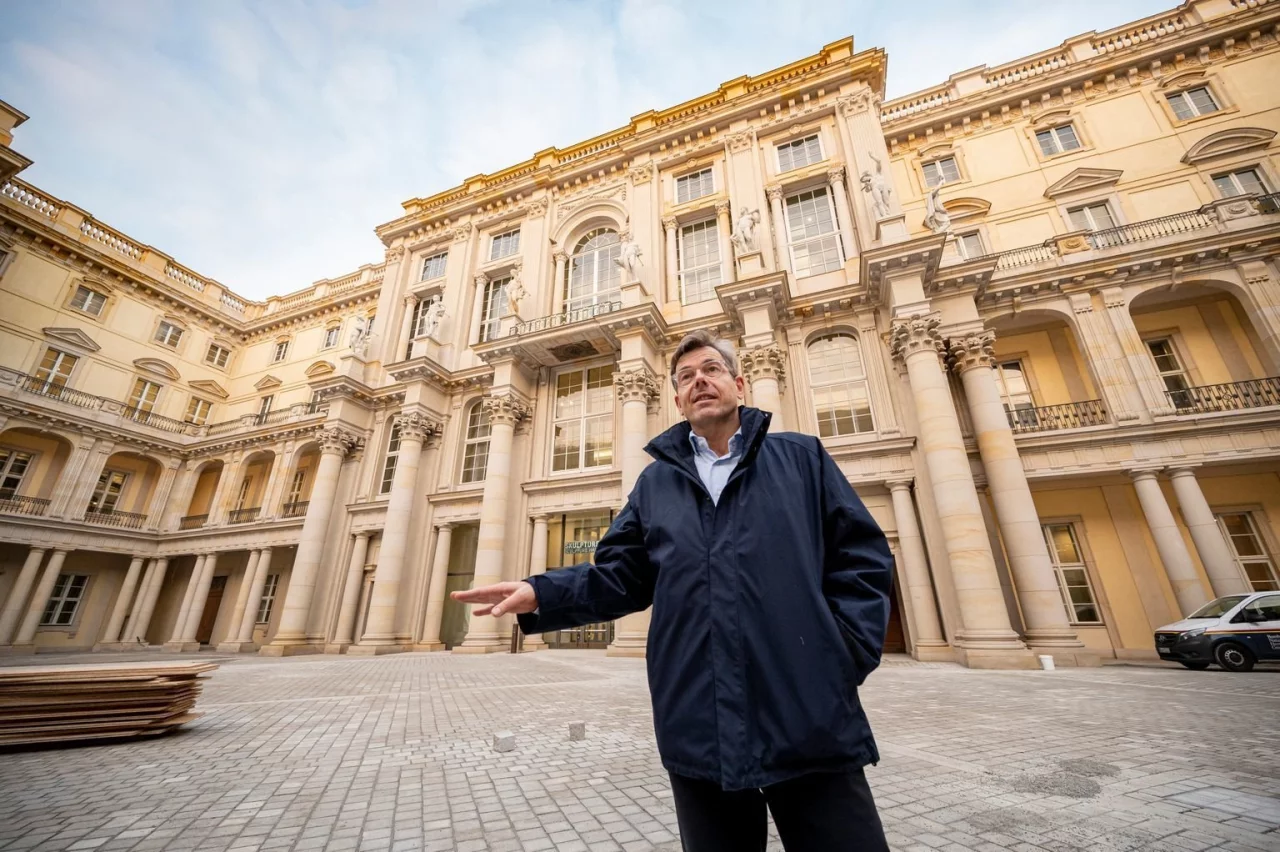 Wer in Dorgerlohs Team von «Schloss» spricht, muss einen Euro in die Kaffeekasse zahlen. Beim Gang durch das von letzten Bauarbeiten belebte Humboldt Forum rutscht dem Intendanten das so ungern gehörte Wort dann doch schon mal durch. Dorgerloh will wichtige Orte im Bau zeigen.