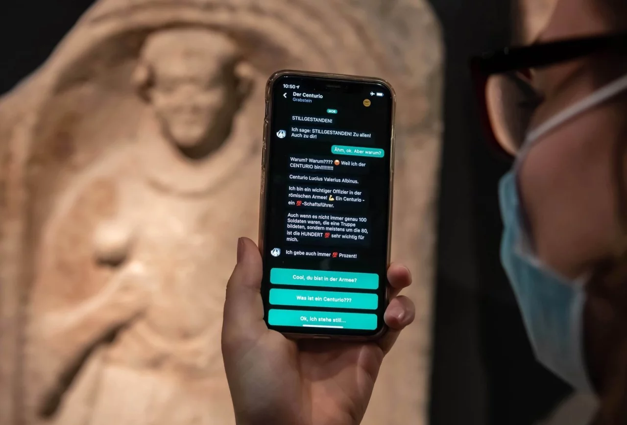 Dabei geht es mal um aktuelle Themen wie Corona, wenn man sich etwa für ein Aquamanile interessiert, ein Tongefäß zum Händewaschen. Das Stück hat einen Tierkörper, aber keinen Kopf - so fragt es, welches Tier es wohl sei? Ein hundert Jahre altes Glas mit eingemachten Tomaten verrät Rezepte zum Einlegen. Und der tote Legionär vom Anfang, mit dessen Grabstein man Kontakt aufnimmt, drillt nicht nur, sondern erklärt im Zweifel die lateinische Schreibweise von Zahlen.