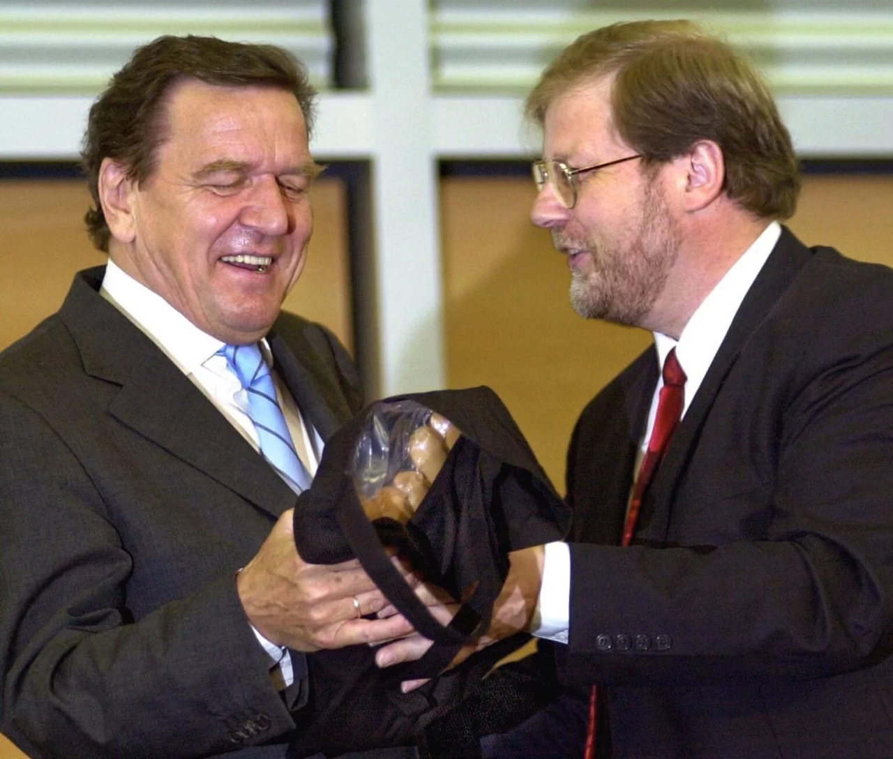 Dass Schröder eine Vorliebe für Gegrilltes hat, ist seit den 1990er Jahren bekannt. Als Kanzler weihte er dann 2002 einen US-Präsidenten in die heimische Esskultur ein: Für George W. Bush bestellte er am Pariser Platz in Berlin Currywurst und Apfelstrudel. Nach Angaben eines Restaurant-Managers zeigte der Deutsche indes mehr Appetit als sein amerikanischer Gast - es habe wohl an dessen Jetlag gelegen.