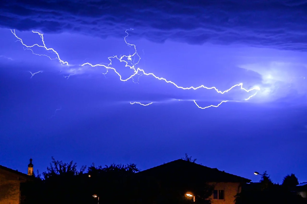 • Himmelsexplosion: Wenn feuchtwarme und kalte Luftströme aufeinander treffen, baut sich am Himmel eine statische Spannung auf, die sich in einem Blitz entlädt. Darin kann die Temperatur 30.000 Grad Celsius erreichen. In Bruchteilen von Sekunden glüht die erhitzte Luft und leuchtet kilometerweit. Durch die starke Erhitzung dehnt sich die Luft explosionsartig aus, was als Donner zu hören ist. Während eines starken Unwetters zucken bis zu 2000 Blitze pro Stunde über den Himmel. Die meisten davon erreichen den Erdboden nicht, sondern rasen kreuz und quer durch die Wolkenschichten.