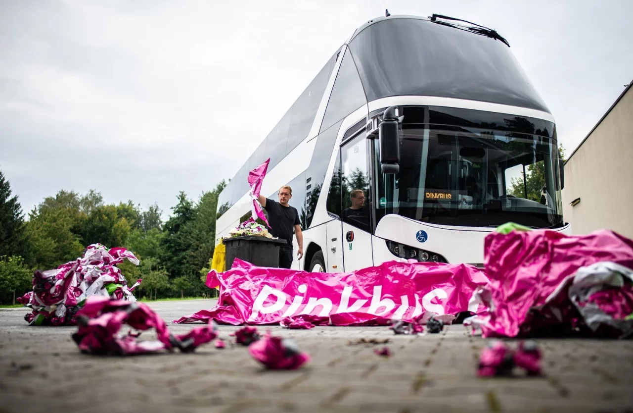 Der Newcomer muss seine Busse farblich umgestalten, weil ihr bisheriger Farbton zu sehr dem Magenta der Deutschen Telekom ähnelt. Am Mittwoch begann das Start-up damit, seinen Fahrzeugen ein neues Farbdesign zu verpassen. In Absprache mit der Telekom verwende man für die Busse und den Internetauftritt jetzt eine von Pink ins Lila verlaufende Farbschattierung, sagte Pinkbus-Mitgründer Tino Engelmann.