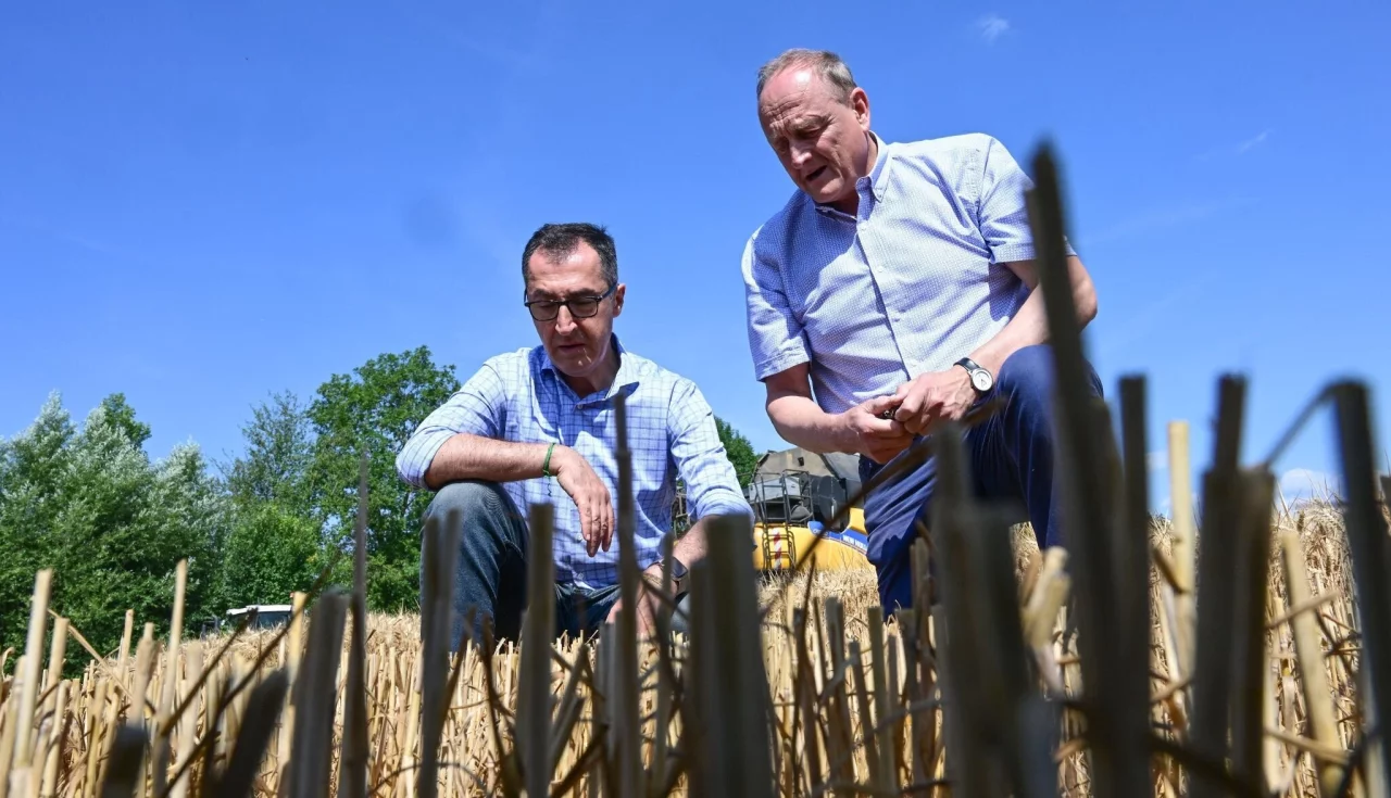 Der Klimawandel war auch ein Thema bei einer Presserunde mitten auf dem Feld gewesen. «Wir wollen alles gemeinsam tun, um die Folgen der Klimakrise so gering, wie möglich zu halten», sagte der Grünen-Politiker. Sitzend auf einer Bank an einem Biertisch, auf der rechten Seite Strohballen aufgebaut, spielten sich beide die Bälle zu und vermittelten einen recht harmonischen Umgang. «Wir haben einen kurzen Draht», sagte Özdemir. Man rufe sich an oder schreibe sich SMS. Doch der Grünen-Politiker betonte auch, die Ansichten beider seien nicht zu 100 Prozent deckungsgleich.