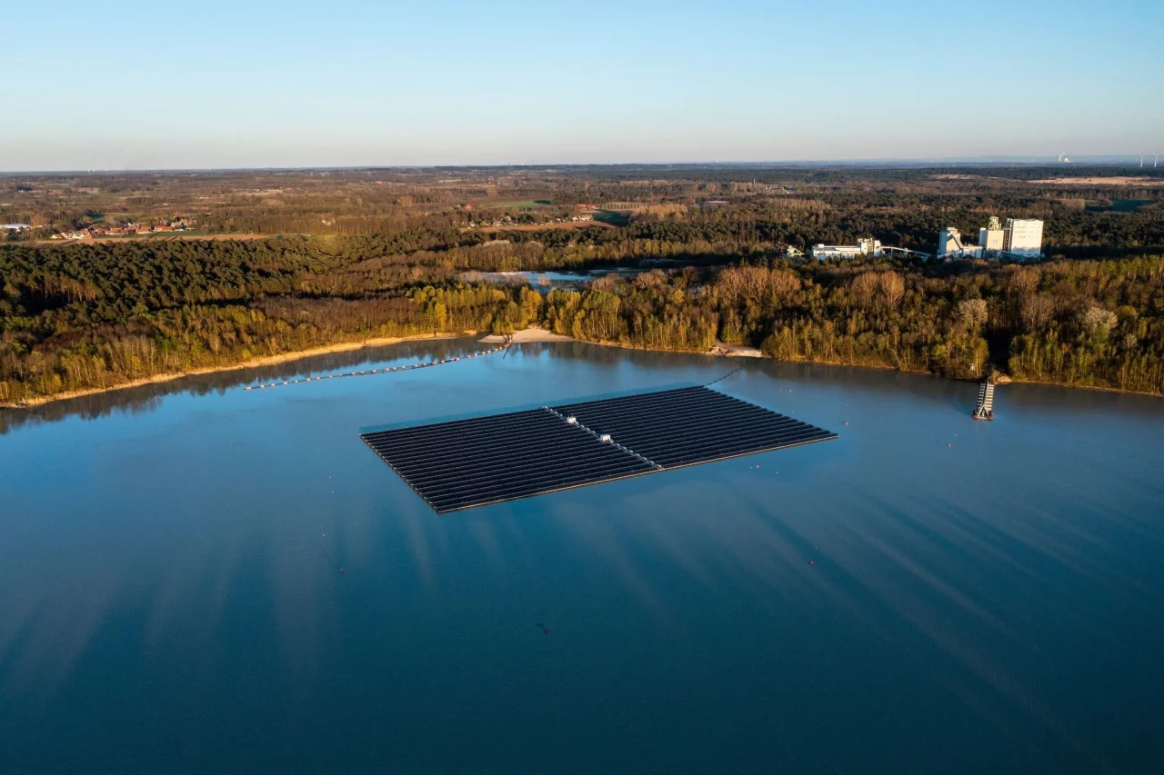 Die Anlage mit 5800 Solarmodulen, die auf dem Baggersee eine Fläche von 1,8 Hektar einnimmt, war im Mai 2022 in Betrieb genommen worden. Die Nennleistung liegt bei 3100 Kilowatt (3,1 Megawatt). Zum Vergleich: Die meisten Solaranlagen auf deutschen Einfamilienhäusern erbringen nach Angaben des Energieversorgers Eon eine Leistung zwischen 4 und 10 Kilowatt. Auf dem Weg zur Klimaneutralität in Deutschland soll der Ausbau der Stromerzeugung aus Sonnenenergie eine zentrale Rolle spielen.