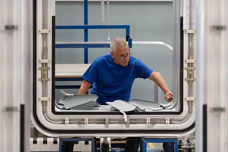 Das hinterlässt deutliche Spuren: Der Stoff der Wellenbälge ist abgewetzt und verwittert, die Aluminiumrahmen, an denen sie befestigt sind, sind verschmutzt und abgeschabt. In Kassel haben die Komponenten eine Frischekur bekommen. «Die wiederverwendbaren Teile werden aufgearbeitet. Was nicht mehr brauchbar ist, wird entsorgt und ersetzt», sagt Harz. Dazu gehören etwa die Faltenbälge, die abschließend wieder mit den überarbeiteten Rahmen zusammengebracht werden.