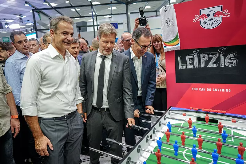 Zusammen mit dem griechischen Regierungschef Kyriakos Mitsotakis eröffnete Habeck am Samstag die deutsche Partnerlandbeteiligung der Messe «Thessaloniki International Fair» - eine der wichtigsten Messen in Griechenland. Die beiden nutzen einen Rundgang auf der Messe, um die guten Beziehungen zu demonstrieren. Landwirtschaftsminister Cem Özdemir (Grüne) ist auch dabei. Man scherzt und spielt Tischkicker - Habeck und Mitsotakis gewinnen 1-0 gegen Özdemir und den griechischen Agrarminister Konstantinos Tsiaras.