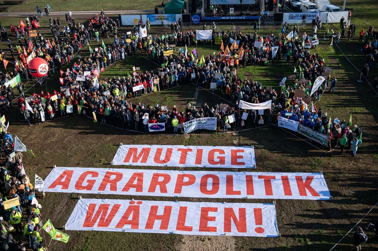 Zur Agrarmesse Grüne Woche in Berlin haben Bauern und andere Organisationen für eine nachhaltige Landwirtschaft demonstriert. Dabei breiteten Aktivisten Banner im Regierungsviertel aus. Ihre Forderung lautete: «Mutige Agrarpolitik wählen!». Laut der Veranstalter beteiligten sich rund 60 Organisationen an der Demonstration. 10.000 Teilnehmerinnen und Teilnehmer waren angemeldet. Zum Start sprach die Polizei von etwa 1700 Menschen.