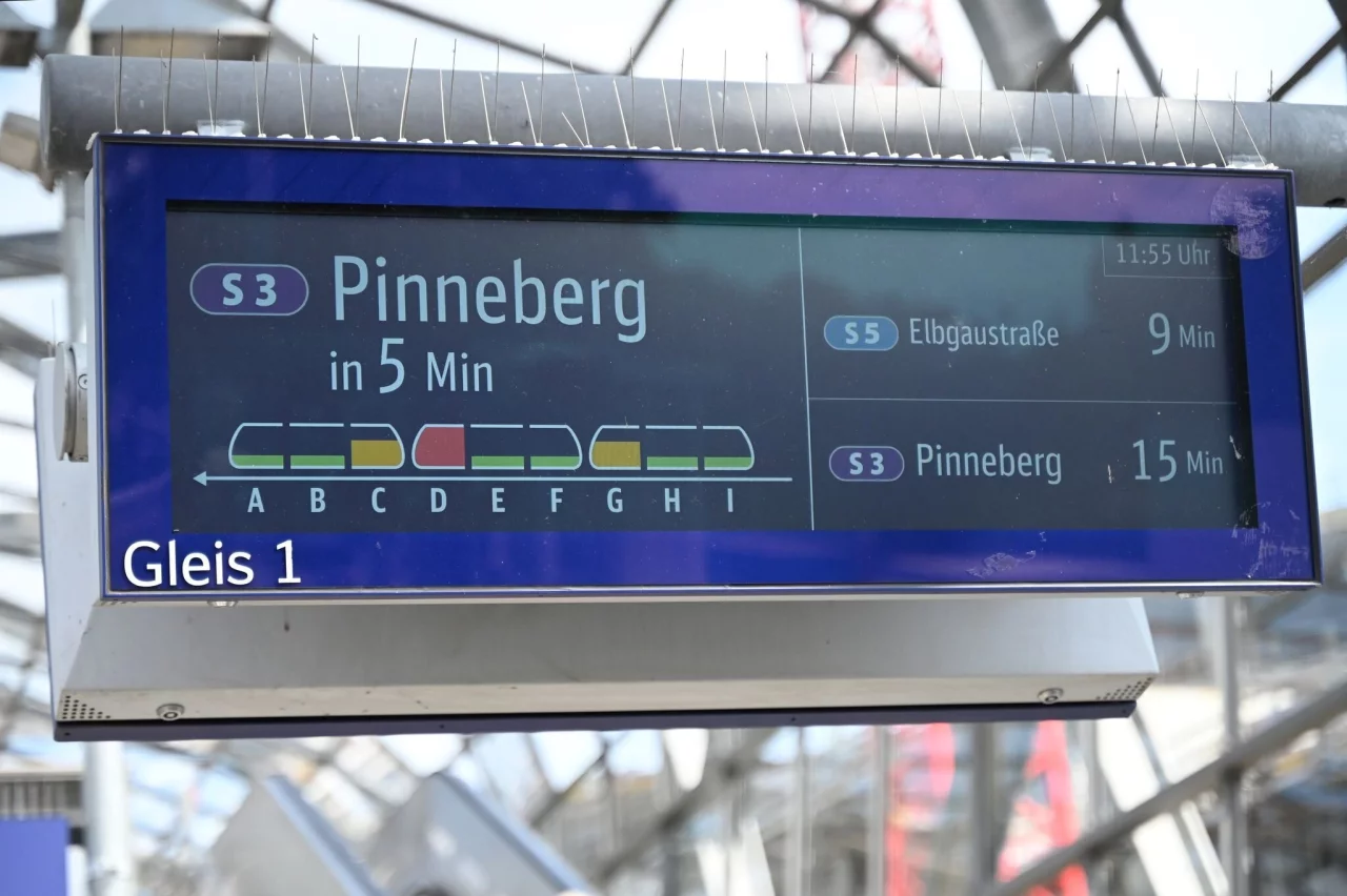 Die Deutsche Bahn hat im Januar 2023 angefangen, die Technik an S-Bahnstationen in Hamburg zu testen. Inzwischen verfügen dort den Angaben nach 88 Prozent aller Stationen über Auslastungsanzeigen.
