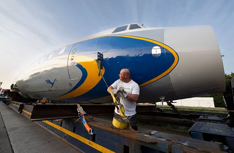 Noch fehlen die Flügel, doch die Lockheed Super Star zieht auf der Baustelle am Frankfurter Flughafen bereits alle Blicke auf sich. Im Vergleich zu den heutigen Flugzeug-Jumbos wirkt der im historischen Lufthansa-Kleid neu lackierte Flugzeugrumpf erstaunlich zierlich. Zusammen mit einer historischen Junkers Ju 52 soll das viermotorige Propeller-Flugzeug aus den 1950er Jahren zum Publikumsmagneten des neuen Besucher- und Konferenzzentrums direkt neben der Lufthansa-Zentrale werden.